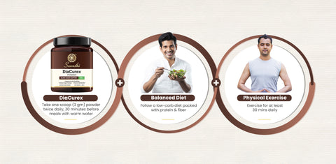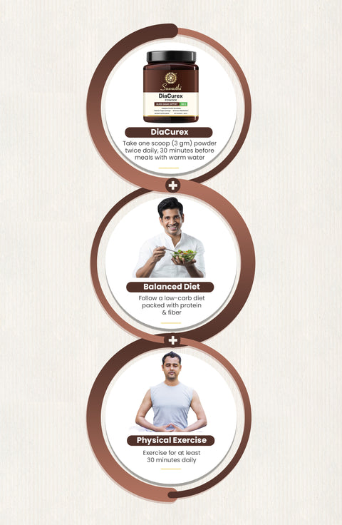 For best results, mix one scoop (2.5-3g) of DiaCurex Powder in a glass of lukewarm water and consume twice daily, at least 30 minutes before meals.