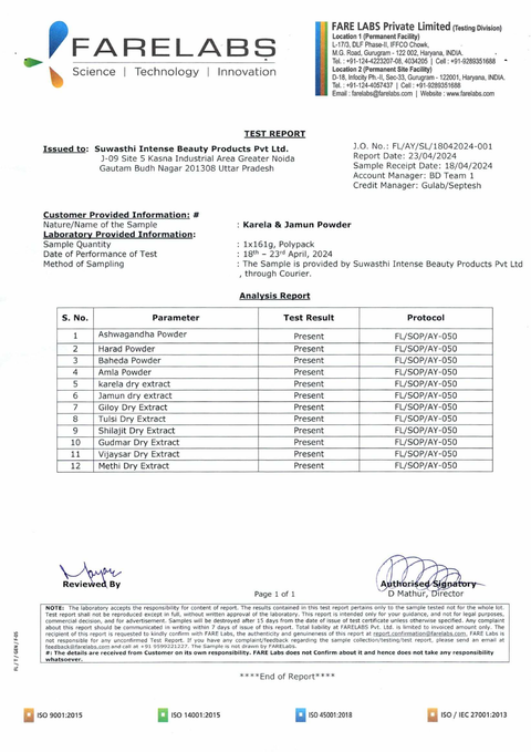 In an Ayurvedic clinical study with 317 Indians who used this Suwasthi’s Karela Jamun Powder for 6 months.