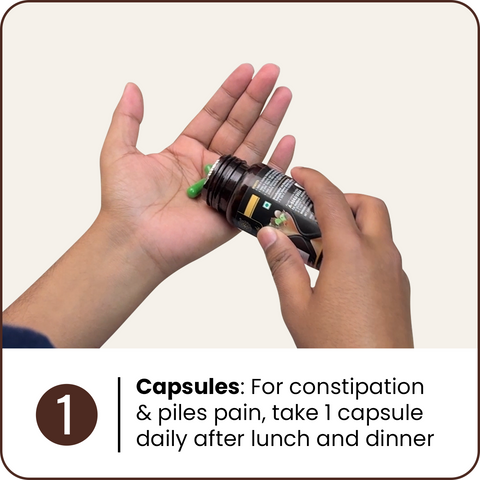 1. For constipation & piles pain, take 2 capsules daily after lunch and dinner