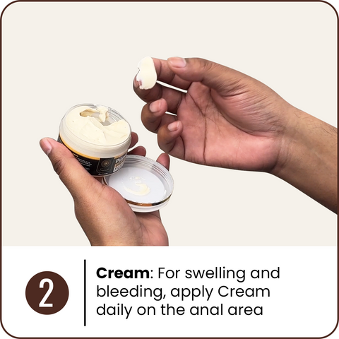 2. For swelling & bleeding, apply Pilescurex Cream daily on the anal area
