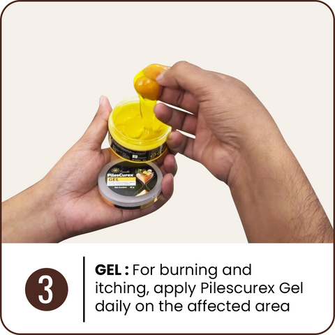 3. For burning & itching, apply Pilescurex Gel daily on the affected area